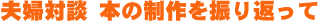 エリ:いやしかし、作るのは大変だった〜。 トモ:ぶっちゃけ、今年の夏はつぶれたよね。 エリ:ホント、ありがたいやら申し訳ないやら……。 トモ:何度夕飯抜きになったことか(笑)。 エリ:いまだから笑えるけどさ〜、いやホント、 トモ:確かに夫婦で仕事すると、衝突するよね。 エリ:成長しないというか。でもまあ、ふたりいたから トモ:感謝したほうがいいよ、僕に(笑)。 エリ:私にもね(笑)。 トモ:まあまあ、というわけでそろそろ対談は終わり。 エリ:買ってください……いやマジで。 トモ:それはダメだよ! まあ、ご縁があったら、 (2006年8月某日 東京の自宅にて)