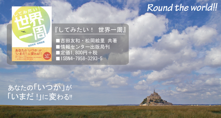 おかげさまで続々重版中! 6月14日第6刷決定しました 9月23日/24日 旅行博2006(情報センター出版局ブース)にて先行販売(完売御礼!) travelRbum[たびのあるばむ]にて最新情報&世界一周秘蔵写真公開! インターネット通販はAmazon.co.jp、楽天ブックス、セブンアンドワイ、紀伊國屋書店などで販売中