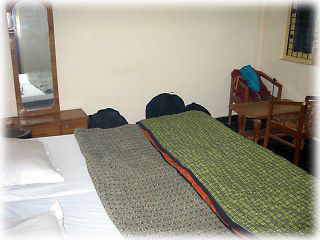 インド有数の大都会だけあって、ハイダラバードよりもさらに宿探しが困難。疲れていたので探し回るのをあきらめ、「地球の歩き方」推薦のこの宿に決めた。値段が張るだけあって、部屋はベッドが狭いことを除けば、そこそこに豪華。ただし、ホットシャワーは出ず、蛇口から出るホットウォーターをバケツにくんで使う。しかも、ホットウォーターが出るのは朝の6時から8時まで。従業員の態度には好感が持てた(ハイダラバードのあとだっただけに、なおさらだったのかもしれないが)。宿の目の前にオート・リキシャー乗り場があるのも便利 滞在;2002年12月10〜11日 |