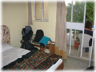 これでもかっていうくらい寄ってくる客引き達を完全に無視して一路やってきた宿。かの有名な「久美子ゲストハウス」のすぐ隣。妻は以前のインド旅行でもここに宿泊した。テラスから眺めるガンガーは最高だが、部屋はいまいち。大ドミトリーがあって、長期滞在日本人旅行者も多い。私たちはダブルの部屋が空いていなかったため、シングルの部屋にエキストラベッドを入れてもらった。1泊した翌日もダブル・ルームが空かなかったのと、部屋の質の割には値段が高いということで、早々に引越ししてしまった 滞在;2002年11月16日 |