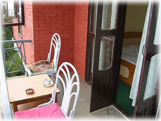 初めてナガルコットに行った日に泊まった宿。目の前をヒマラヤの山々が広がる抜群のロケーション+プライベート・テラスにひかれてステイした。その名のとおり緑豊かな谷あいに建っているので、窓を開けると空気がすがすがしい。ただし部屋が広すぎてちょっと寒い&湿気っぽいので一泊で「ちょっと違うかも……」って感じになってしまった 滞在;2002年10月6日 |
