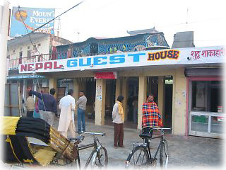 再びナガルコットへ行くべく、荷物を取りにカトマンドゥに戻ってきたときに以前いたYeti Guest Homeがいっぱいだったので泊まった。Yetiの隣、同じ建物を半分に割って奥がYeti、手前がMustang。とりあえず泊まってみた感じだったが、ホットシャワーが出なかったことを除けばとりたててマイナス点ははなかった。カトマンドゥでは珍しくドミがあるようで、日本人旅行者も多かった 滞在;2002年10月7日 |