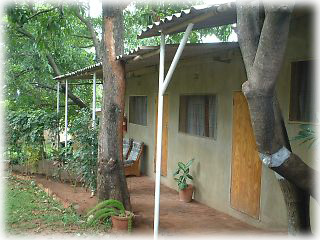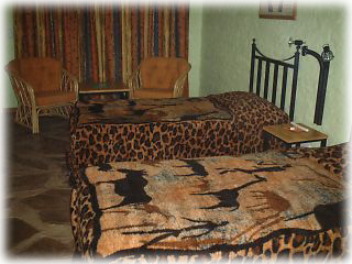 ハラレから丸一日バスの乗ってビクトリアフォールズに着いたときは夜10時過ぎ。前回来たときも泊まった「Pat's Place」がなんと満室で、疲労困憊のまま流れ着いた宿。いわゆるバックパッカーズで、広い庭にくつろぎスペースがあったり、まあまあ設備の整ったキッチンもあるが、なにせ高い。ドミで7ドルというのは私たちにとっては7000円ぐらいに感じてしまう(笑)。幸い3人ドミを私たちふたりで占領できたので、居心地はよかったが、やはり「仮の宿」という気分はぬぐえなかった。翌日には空き部屋ができたPat's Placeに避難 滞在;2003年4月9日 |