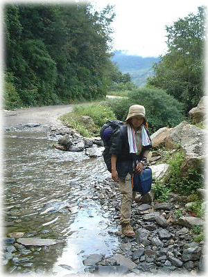 もうすぐネパール! と意気込んで到着したものの、中国側の国境ダムからネパール側の国境コダリまで8キロの道のりをバックバックを背負ってヨチヨチ歩くことに。ちなみにこの区間、ランクルをチャーターするとひとり20元(=約300円)らしい。途中ショートカットすれば徒歩で3キロ程度だというガイドブックを信じて歩きにしたのだが、ひどく後悔する結果に(詳しくはこちら)。聞いてないよも〜と言いたくなるようなハプニングもあったが、山道自体は景色もよく、余裕のある人には楽しいミニ・トレッキングかも。ただし2002年10月初旬のネパールの新聞に、中国側のボーダー付近で中国人らしき軍服を着た男にアメリカ人のツーリストが撃たれるという事件の記事が載っていた。おおこわ。 |