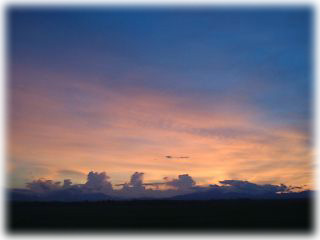 フエからラオスに入る予定だったものをルート変更したために、フエにてハノイ行きのチケットを購入。ローカル・バスも考えたが、移動距離が長いためにひよってまたもシンカフェ・バスにした。午後4時に出発し、ハノイに到着したのが朝の6時半。夜行ということで満員だとヤダ〜と思っていたものの、見事ふたりで4席確保に成功。縮こまっていたものの、ぐーぐー寝ながら移動。途中の夕日が見事で、あまりに興奮した絵里は50枚近く写真を撮ったが、走っているバスからの写真のためほとんどがブレブレ。ぐっすん。 |