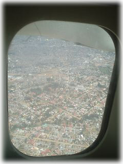 とりあえず行きの分のチケットのみ入手し、帰りについては引き続きウェイティング・リストへ登録したまま出発した。アジスアベバからラリベラへはダイレクトに飛んでおり、所要約1時間。飛行機は50〜60人乗りくらいの小型機。窓から見えるエチオピアの景色はすこぶるよい。機内食として、ジュースとフルーツ・ケーキが出てきた。ラリベラの空港はかなりしょぼい。