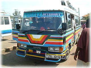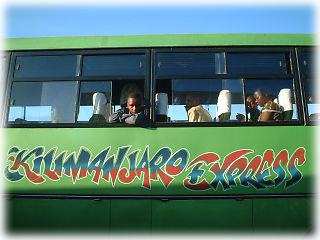この区間は何社もバスを運行しており、グレードによって値段もさまざま。やや距離があるので、とことんまで安いバスよりはミドル・クラスのほうが楽なんじゃないの? という理由で私たちが選んだバス会社は「Kilimanjaro Express」。「地球の歩き方」によると最安値は7500Tシリングらしい。朝8時半に出発し、午後4時半に到着。ほぼスケジュール通りなのにはビックリするやらうれしいやら。道は完全舗装されており、暑いことを除けばとても快適。なので、実際にはどのバス会社を選んでもあまり変わらないかも? ダルエスサラームに近づくにつれ、椰子の木が増え、湿度も増してかなり暑くなってくる。ちなみに昼食休憩はたったの10分。けれど乗客はみんなその時間内で食べ終えていた。ポレポレ(ゆっくりゆっくり)なアフリカにあってスピーディな一面を垣間見た移動。