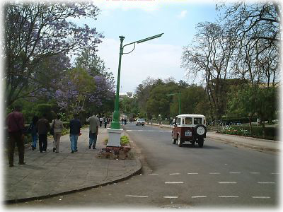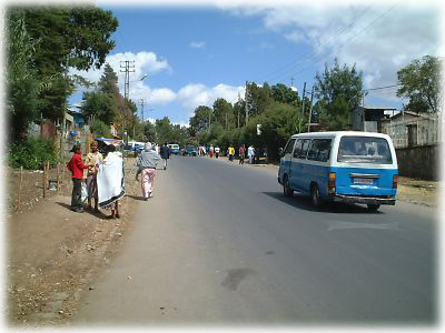 ![]() アジスアベバの市内。もっとビルが建ち並んでいるエリアもありますが、一本脇に入るとこんな感じ。写真右の青白色の乗り合いミニバスによくお世話になりました |