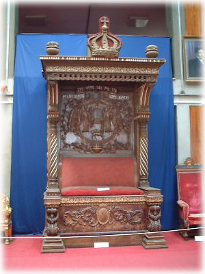 ホントは撮影不可のところ、こっそり隠し撮りしたハイレ・セラシエ皇帝の玉座。ムム、やっぱり威厳のある立派なものです |