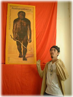 「ルーシー」の名前で知られる原人の化石が発掘されたのもエチオピア。アウストラロピテクスのポスターと一緒に、原人顔で(笑) |