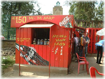 ![]() コカ・コーラは世界の共通語? ここエチオピアでもこんなコーラのスタンドが。しかし、エチオピアのアムハラ語の文字ってなーんか不思議な感じ |