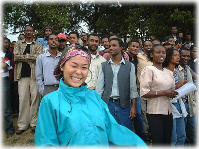 ![]() いざ、ライブ開始! 「いえ〜い!」、エチオピア人以上にはしゃいでしまったワタクシ。みなリズムをとりつつも、意外と冷静に見ていました。珍しいのか、恐いのか? 私のまわりには人があんまり寄ってない(笑) |