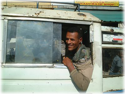 ![]() 市場にてミニバス発車待ち中のイケメンなエチオピア人兄さんを激写。エチオピアは男性もかなり整った顔の人が多いのね♪ |