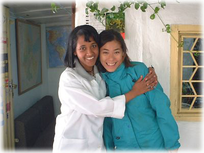 ![]() 「Baro Hotel」のフロント嬢と。美人で優しく、さらに気が利くという三拍子揃ったアジスっ子。彼女のプリティーさにひかれて、この宿に決めたという噂も |