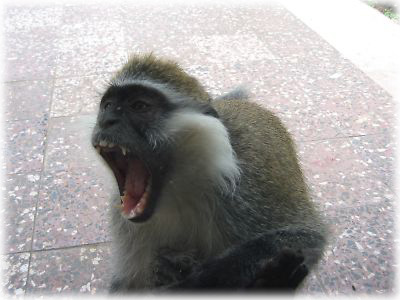 ![]() 温泉の敷地内には猿がいっぱい。バナナを見せると、あんぐりと口をあけたマヌケ猿。写真ではわからないけれど、カメラと猿の間にはガラスがあるのだ。いじわるしてゴメンね |