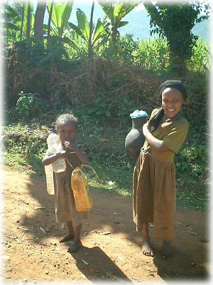 水汲みに向かうウォンド・ゲネット村の女の子たちをパチリ。生意気な子供が多いなか、この子たちはおしとやかでかわいかった |
