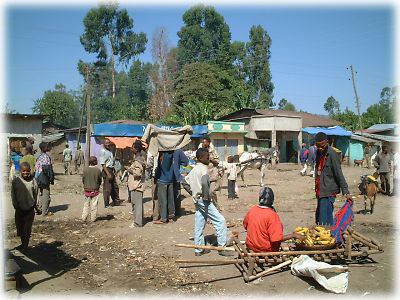 ![]() 温泉のそばのブサの村の目抜き通り。未舗装のせいか、エチオピアの村はどこも埃っぽい。昼間から男の人がぶらりぶらりとしているのはアジアに近いかも |
