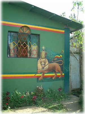![]() シャシャマネ村の、ジャマイカから帰化したラスタマンたちが住む家。建物の雰囲気といい、ペインティングといい、只者ではない家だ |