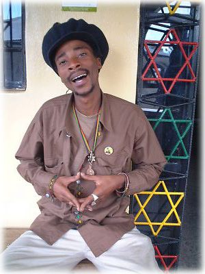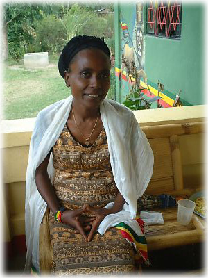 この家の近くに住む、エチオピア人のラスタお姉さん。おっとりしてて、カワイイ感じの人。やっぱりラスタ・カラーのものを身につけているのは敬虔な信者の証 |