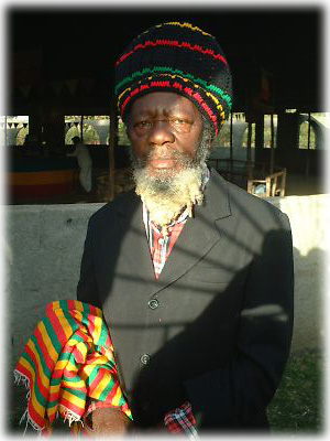見よ この迫力! ジャマイカから来たラスタ・ママ。この村のママでもある。立派な白いヒゲ、ビッグな体……ママはこうでなくちゃ! どう逆立ちしても、日本人にこのオーラは出せないだろうなー |