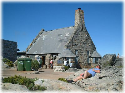 ![]() 頂上のレストハウスと、その脇で昼寝するおっちゃん。ここで堂々と寝られる神経もスゴイけど(結構観光客が多い)、しかしこうしてみると気持ちよさそう。寝ちゃったもん勝ちです、ハイ |