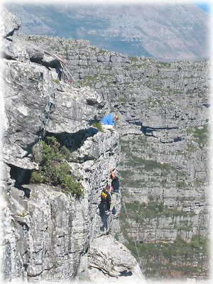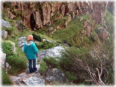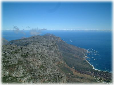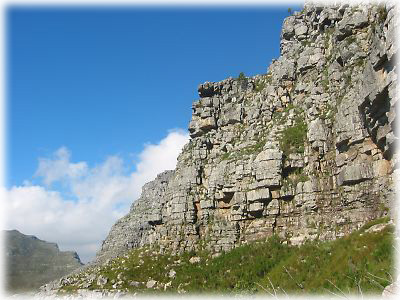 ![]() テーブルマウンテンの山肌はこんな感じに岩がゴツゴツしているところが多い。このまま映画のロケに使えそう |