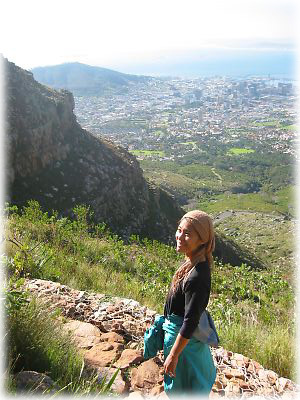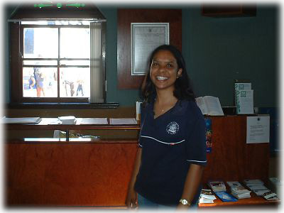 ![]() ウォーターフロントのインフォメーション・コーナーのお姉さん。親切なうえ、カワイイと申し分のない彼女。南アには彼女のようなカラード(混血)の人も多い |