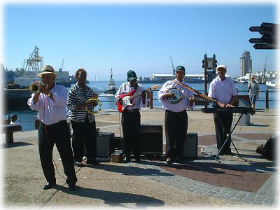 ![]() 海をバックに軽快なジャズを聞かせるバンド。絵になる! しかも上手い! ケープタウンのストリート・ミュージシャンは総じてレベルが高い。アフリカの地とヨーロッパのセンスがミックスされているから? |