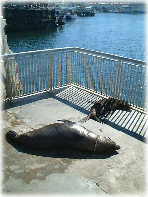 ショッピング・モールの建物の脇にはなぜかアザラシがゴロリと寝転がってひなたぼっこ。なんかキミら、いい身分だねえ(笑) |