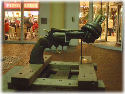 ![]() いかにも平和なベイエリアだけど、建物の脇にはこんな「銃はダメよ」なモニュメントがあった。南アは銃社会で、しかも犯罪率も高いということを慌てて思い出す |