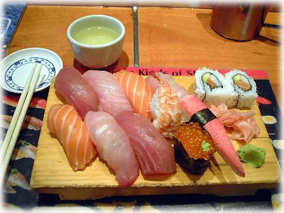 ![]() 見よ! この燦然と輝く握りを! いや〜、これには感動したねぇ。「SUSHI」じゃなくて、ちゃーんと「寿司」だもん。写真を撮るのが待ちきれなかったもん。しかもウマイ! ウマイ! ウマイ! ホンキで涙が出ました。旅に出てうまかったものNo1かも(笑) |