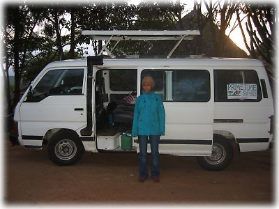 ![]() サファリ一日目を終了、「お疲れさまでした」。サファリ・カーはこんな感じにルーフが開くタイプの車がほとんど |