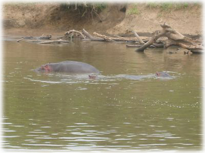 ![]() 水の中にカバがいるのだが、うーん、いまいちなんだかよくわからない(笑)。カバという動物は昼間はずーっと水に潜っていて、時々「プシュウ」とマヌケなため息をついています |