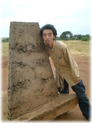 はて、この薄汚い石碑は? 答えはなんと国境! この石碑から向こうはタンザニアなのです。島国の日本人には「ここから向こうは違う国だよー」と言われても、なんだかピンとこない |