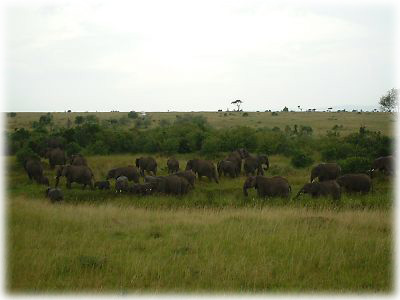 ![]() サファリもダレ気味になってきたころ(笑)、目の前に黒い大群が。うわ、これ全部象! 大きいのから小さいのまで100頭近く(以上?)が群れになってのっしのっしと歩いていきました。こういう風景はやっぱり動物園じゃ無理なものでしょう |