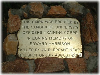 ![]() と思いつつテクテク歩いていくと、なにやら記念碑のようなものが。なんと、この近くで象に殺された人を追悼するものだそう。うーん、写真なんて撮ってていいのか(笑)? |