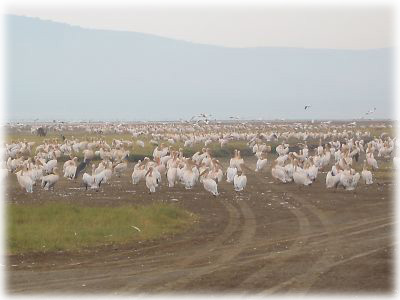 ![]() ペリカンペリカン、俺たちペリカン♪ってな感じでひょこひょこと歩いていたペリカンの群れ。車が近づくといそいそと逃げていく姿もファニー。やっぱりコレも一匹飼いたい(笑) |