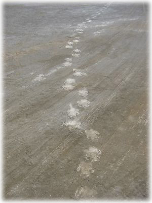 なんだか恐竜のような足跡が続いています。これはひょっとして…… |