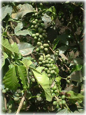 コーヒーを飲むことは多くても、コーヒーの実を見るのは初めて。この実は収穫まであと2、3か月はかかるそう。「へええ」と社会科見学に来ているような気分でスナップ |
