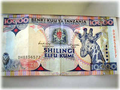 ![]() タンザニアの紙幣はむちゃむちゃカワイイ! お札にキリンってあり? 日本もこのセンス、見習ってほしい。ちなみにバッファロー・バージョンもあり |