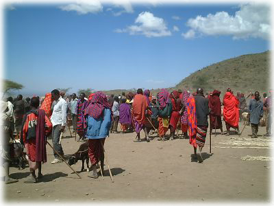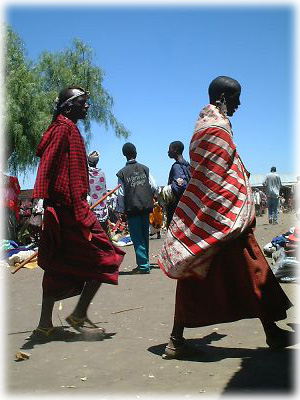 ![]() アルーシャの郊外で開かれているマサイ・マーケットに行ってきました。こちらはサファリのときの観光マサイとは違って、本物のマサイ族が普通にお買い物にくるマーケット(詳しくはこちら)。砂っぽい大地にマサイ族の赤が光る |