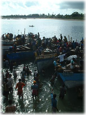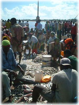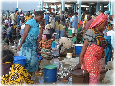 ダルエスサラームは港町。魚市場は海に面していて、船から次々と魚があげられてくる。ここではアフリカ人と思えないほど(失礼)皆せっせと働いていた。海の男はなかなかカッコよいのだ |