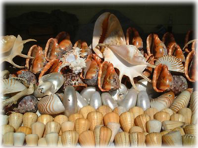 ![]() 海のきれいなところでは定番、貝殻のお土産。「こんなもの、絶対いらない」と思いつつ、ついつい見てしまうんだなあ、でもってあやうく買うところだった(笑) |