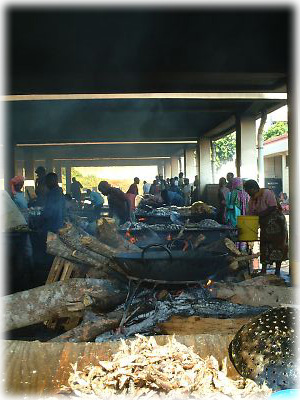 市場の奥にはどでかい鍋で魚のフライを作る「フライ工場」が。しかしこの暑い中に揚げ物とは! マジでしゃれにならないぐらい暑かった |