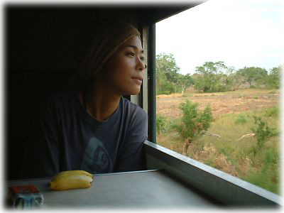 ![]() いよいよアフリカの列車の旅がスタート。ちなみにかなり顔、作ってます(笑)。アフリカの大地を見ながらたそがれてる風です。しかし行けども行けども同じような風景。アフリカって広いのね……。次なる国ザンビアに期待半分、不安半分 |