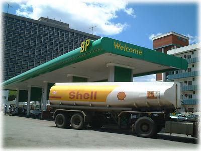 ![]() 首都ハラレのガソリン・スタンドにて。ハラレでもやっぱりガソリンは不足しがちで、運転手はみんなブラック・マーケットで去年までの倍以上の値段を払ってガソリンを手に入れているそう。BPのスタンドにShellの車が止まっていても不思議じゃない |