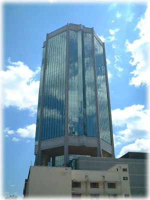 ジンバブエの空にすっくと佇む高層ビル。見上げながら、「なんだか都会だねえ」と口をあんぐり開けてしまった。いまも建設中のビルがあちこちにあるが、インフレのせいで空き部屋も多いとか |