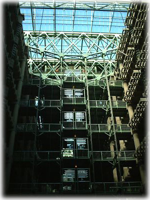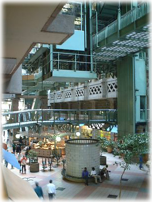 イースト・ゲートは建物自体もかなり凝った造りになっていて、内部の吹き抜けからは空が見える。ここには外資系オフィスなどが入っている |