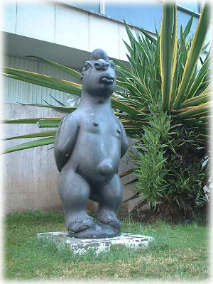 ハラレの美術館前で見つけた出ベソ小僧、もしくは……? 飄々としてて、いい雰囲気の彫刻です |