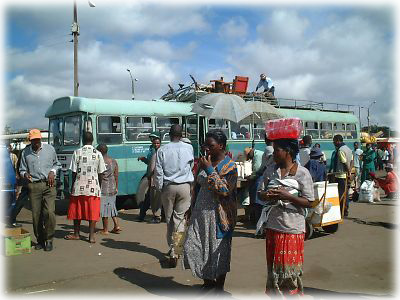 ![]() ムバレのマーケットは一日中いても飽きることがない。売り物を頭に乗せて歩くおばちゃんたち、バスに乗る人、ケンカする人……やっぱり市場は楽しい |